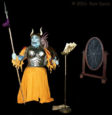 Around the first turn, the Maestro awaits us, holding the curtain back and once again taunting his visitors, "So� You want to see the theater, do ya? Well, go ahead." He then turns his head to face you in passing and growls "What are YOU looking at?"